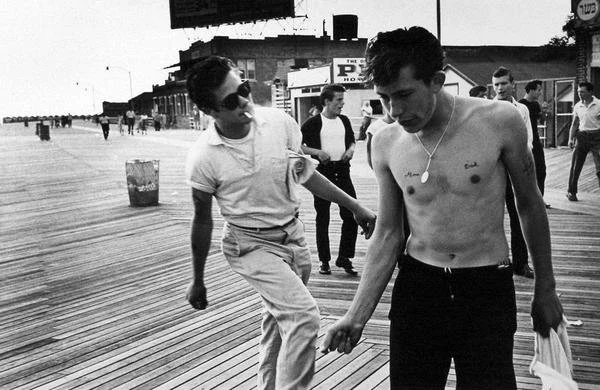 L’un des premiers projets du photographe Bruce Davidson fut Brooklyn Gang. Durant l’été 1959, il entre en contact avec un gang d’adolescents new-yorkais appelés The Jokers. Il passe une grande partie de son temps à les observer et à les photographier. À l’époque, il était tout aussi jeune qu’eux et aurait même pu passer pour l’un d’eux. En entrant dans ce monde inconnu et aliénant, il va côtoyer toute la souffrance, la frustration et la peur que ces jeunes vivent.